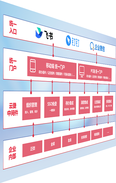 对协作平台提供支持服务,,支持企业应用与协作平台对接,,包含组织同步、、、、消息集成、、待办集成等。。。支持目前主流的协作平台:钉钉、、、、企微和飞书。。。。